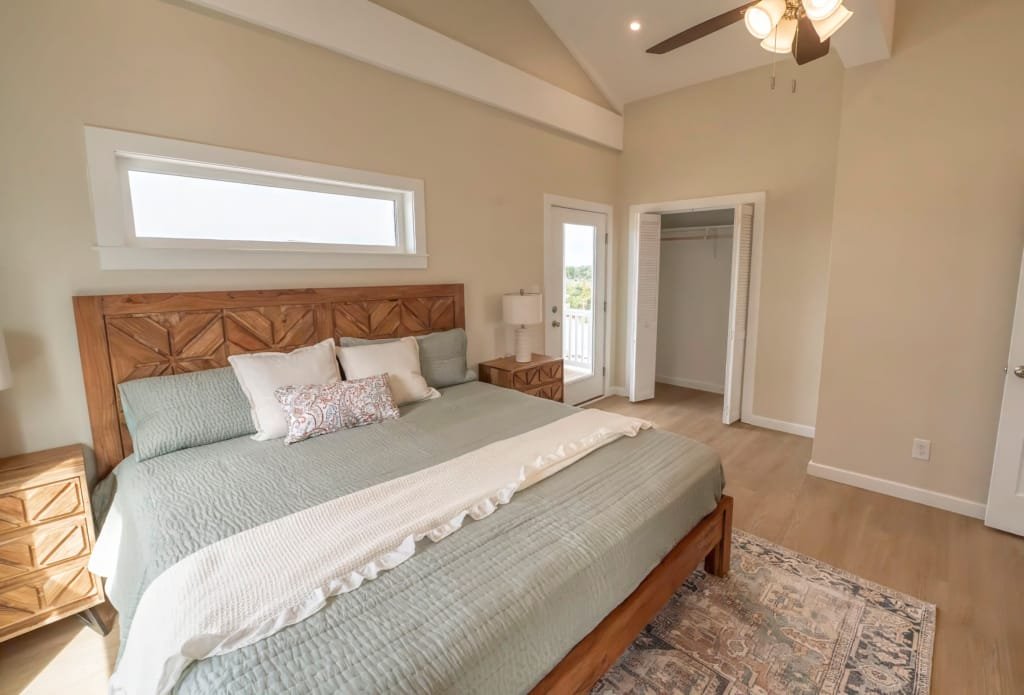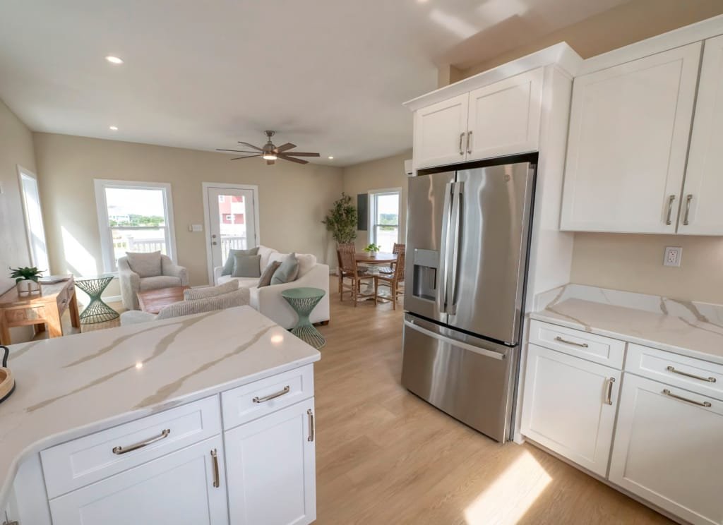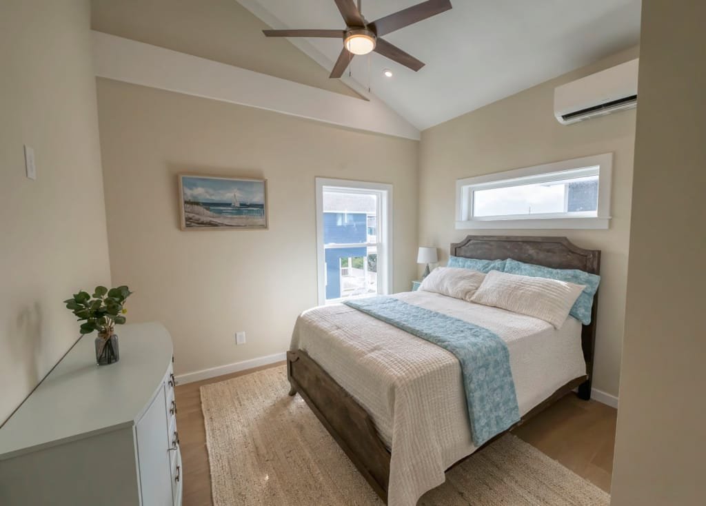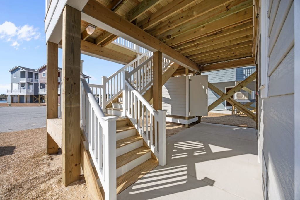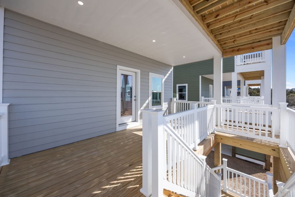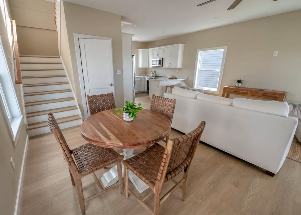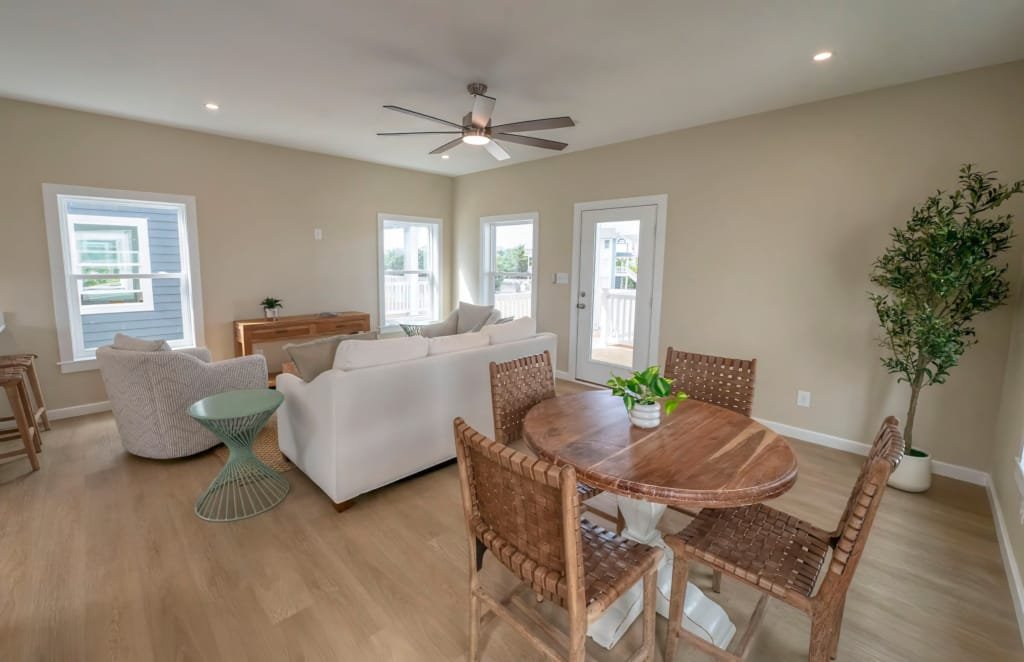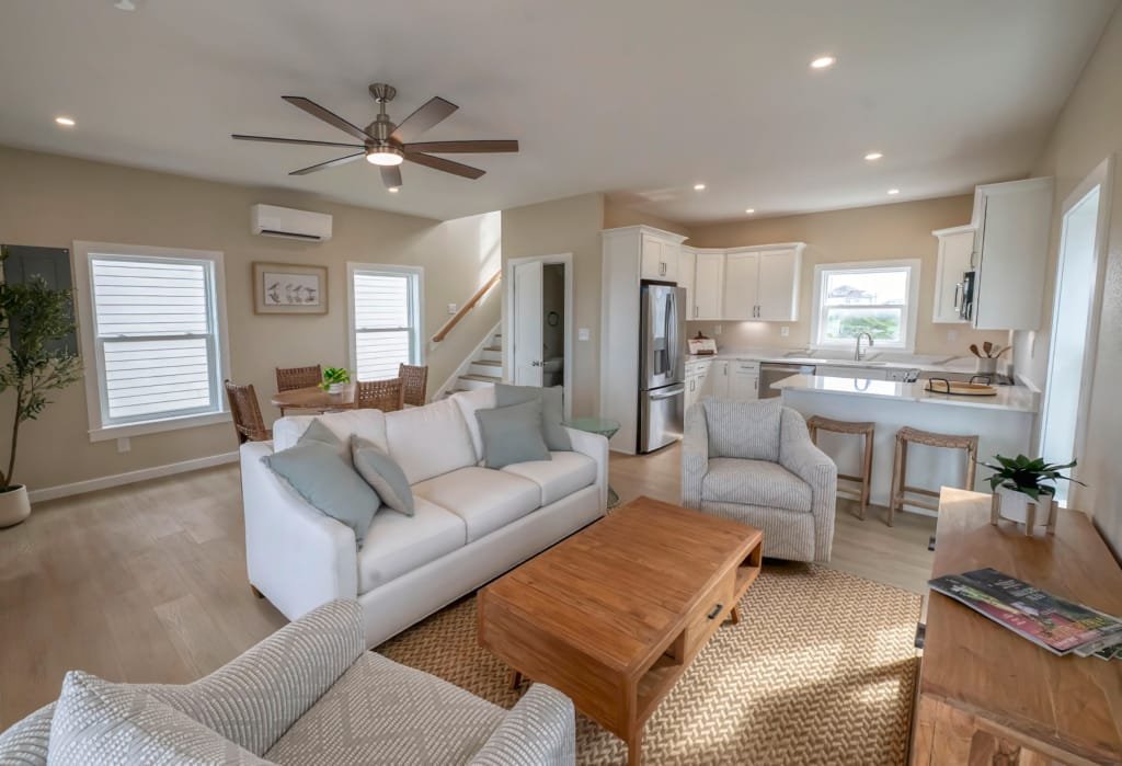 Look inside a Kinnakeet Villas home in our Haven Model. This style home features a lower level living room, and vaulted ceilings with 2 bedrooms and 2.5 baths.
