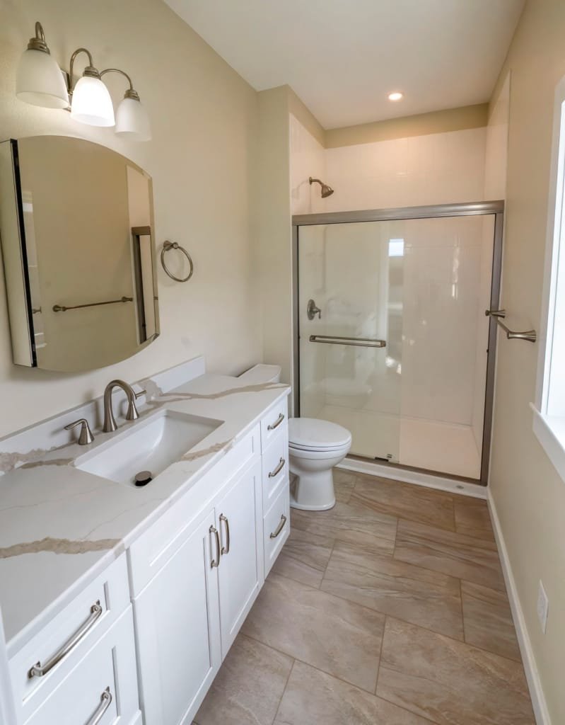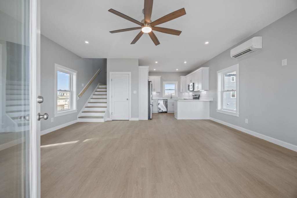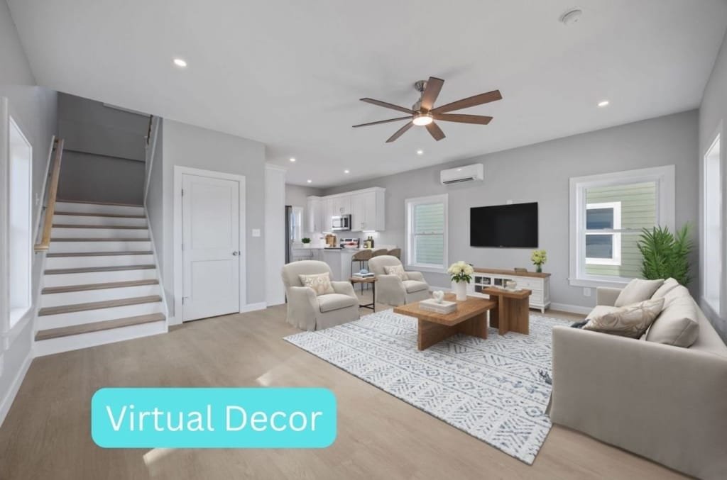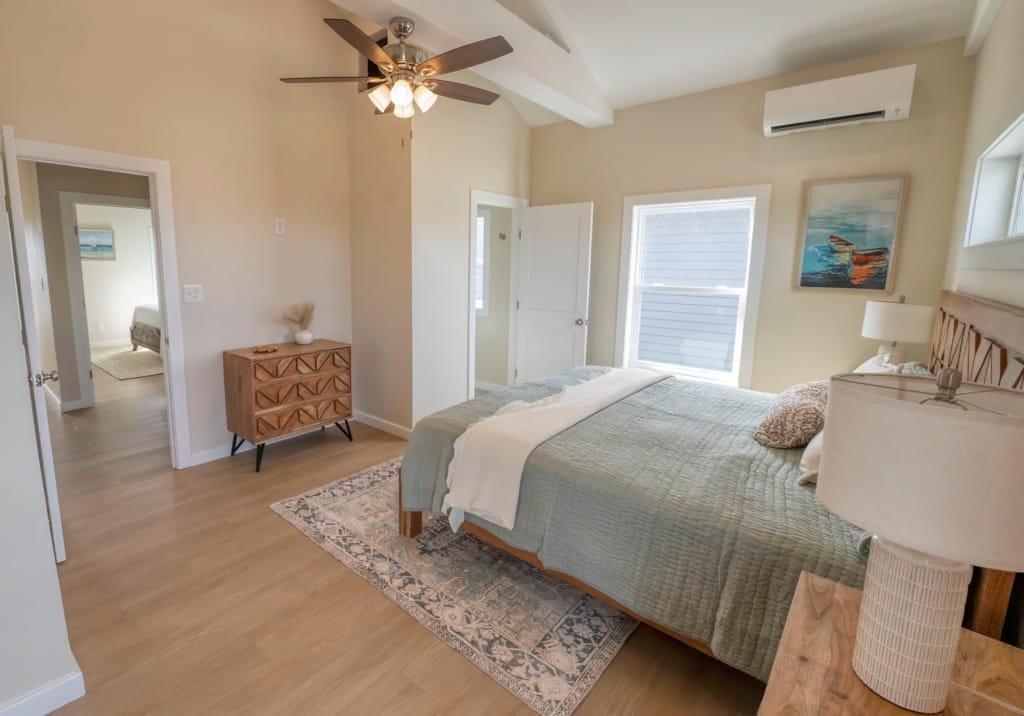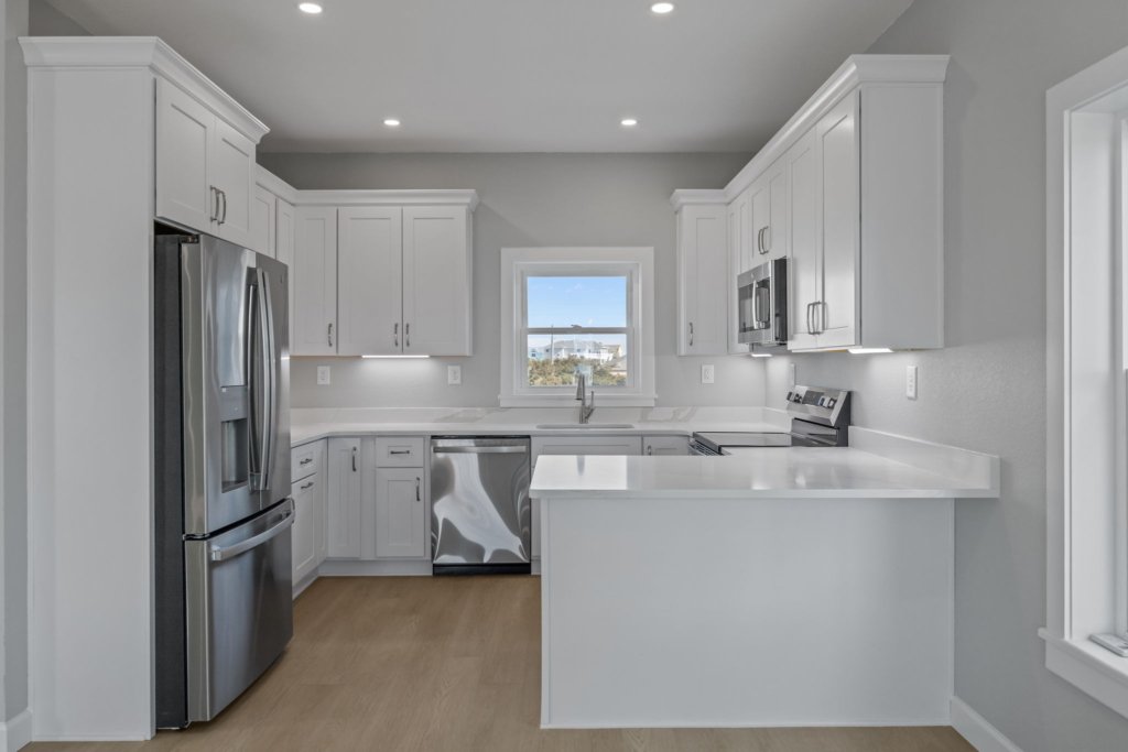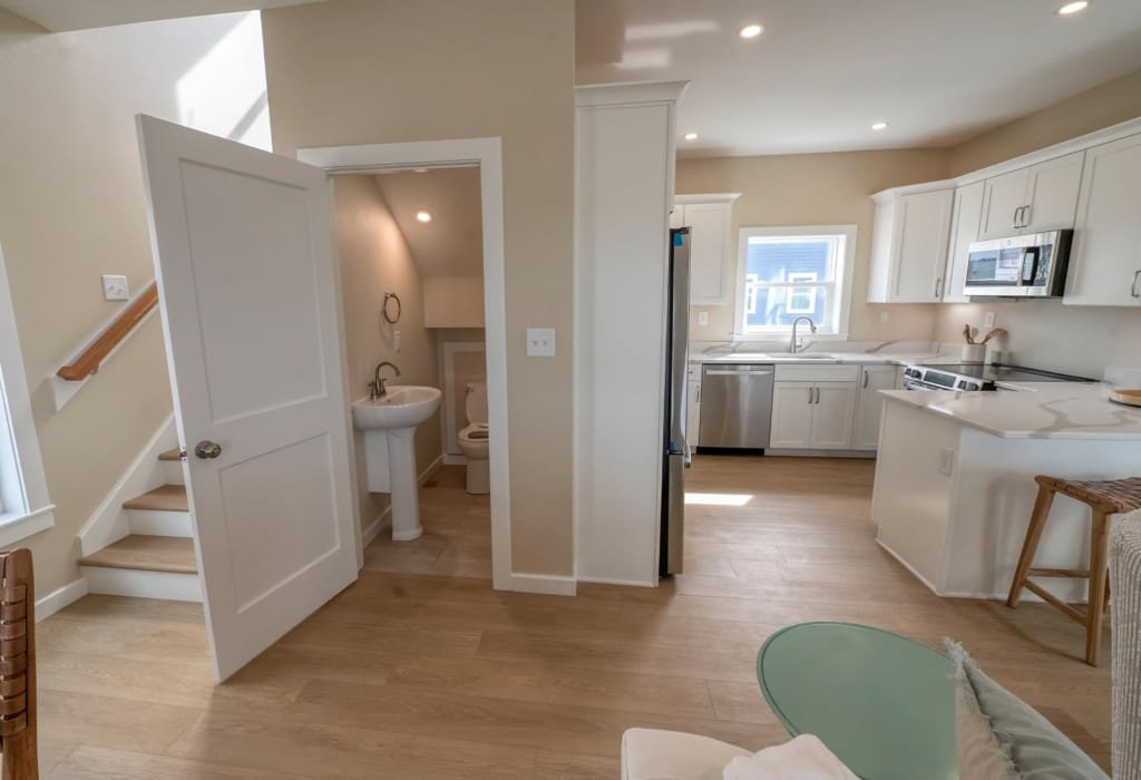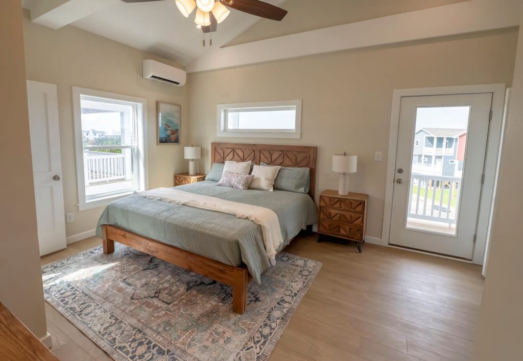Look inside a Kinnakeet Villas home in our Haven Model. This style home features a lower level living room, and vaulted ceilings with 2 bedrooms and 2.5 baths.